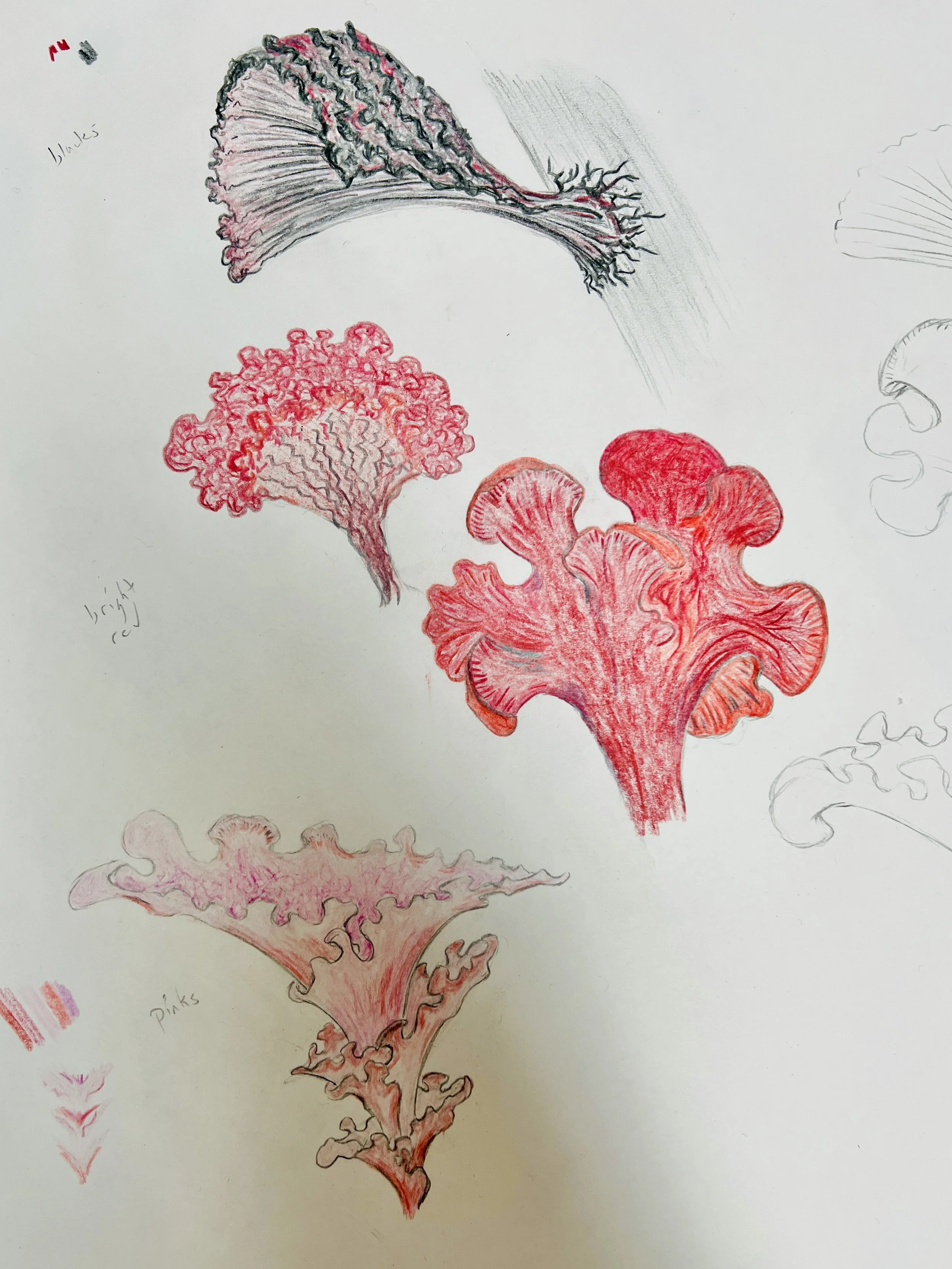 The “tapestries” are inspired by a several things: a new artist’s studio; a fascination with fungus; a desire to make something that can hang on a wall; a love of knitting; exposure to a number of immensely talented abstract painters and printmakers; and questions about and artist’s life, death, legacy, and environmental impact: How much harm was done to the planet when the materials used were made? How much harm will be done to the planet after he’s gone and the art ends up in a landfill?